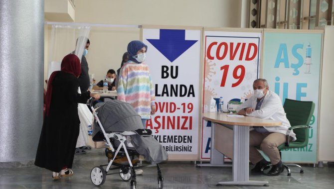 Sağlık ekipleri, Kovid-19 ile mücadele kapsamında kent meydanı, alışveriş merkezi ve havalimanında kurulan çadırlarda vatandaşa randevusuz aşı yapıyor.