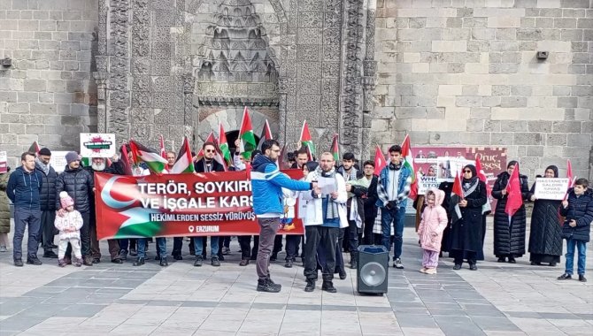 Kent merkezindeki Lalapaşa Camisi önünde bir araya gelen doktorlar, tıp fakültesi öğrencileri ile sağlık çalışanları, Türk ve Filistin bayrakları eşliğinde taşıdıkları döviz ve pankartlarla Yakutiye Medresesi'ne kadar yürüdü.