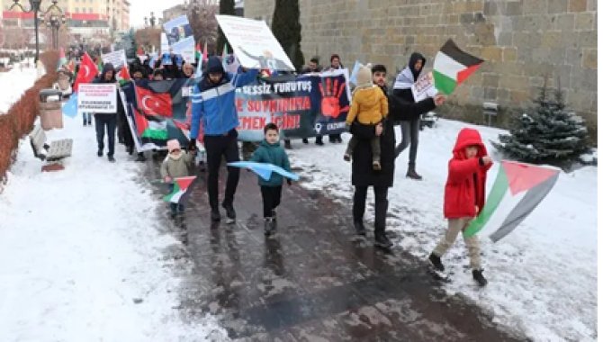 Kent merkezindeki Lalapaşa Camisi'nin önünde bir araya gelen doktorlar, tıp fakültesi öğrencileri ile sağlık çalışanları, Türk, Filistin ve Doğu Türkistan bayrakları eşliğinde, taşıdıkları döviz ve pankartlarla Yakutiye Medresesi'ne kadar yürüdü.