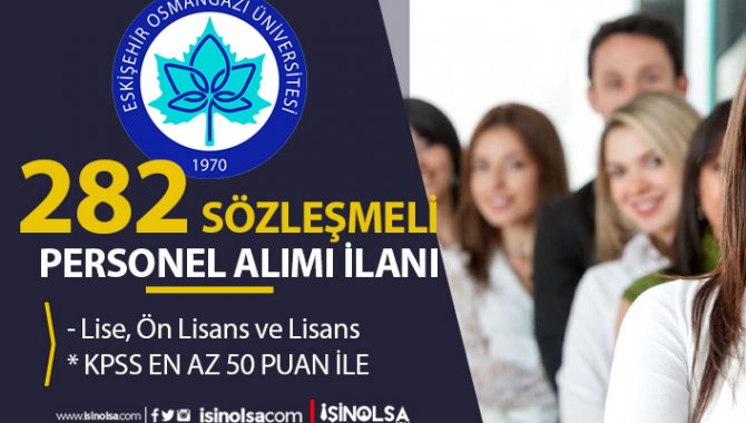 Resmi Gazete'de yayınlanan ilana göre, Eskişehir Osman Gazi Üniversitesi Rektörlüğü ve bağlı birimlerde istihdam edilmek üzere, 1 mühendis, 1 eczacı, 1 psikolog, 1 biyolog, 100 hemşire, 2 röntgen teknisyeni, 2 sağlık teknikeri, 3 tekniker, 5 teknisyen, 20 büro personeli, 50 koruma ve güvenlik görevlisi, 2 şoför, 6 aşçı, 18 hasta bakımı ve temizliği görevlisi, 68 temizlik görevlisi ve 2 programcı alınacak.