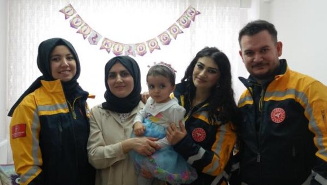 Mine Alkan, 2 yaşına giren Almira'nın doğum günü kutlamasına, doğumu yaptıran sağlık ekibini de davet etti.