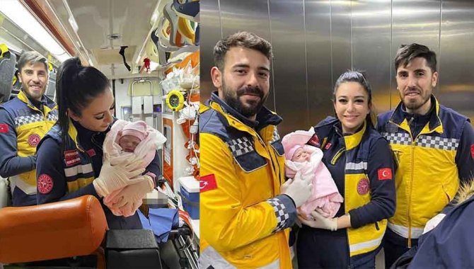 Doğumun başladığını fark eden paramedik Bircan Enci, acil tıp teknisyeni İlyas Demir ile ambulans sürücüsü ve paramedik Kemal Enes Dönmez, hastane yolunda doğumu gerçekleştirdi.