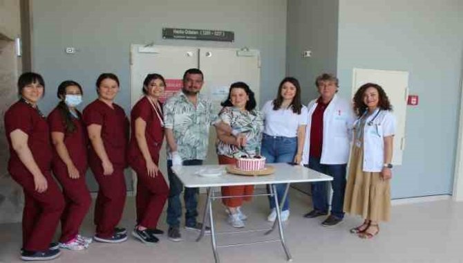 Sağlığına kavuşan İlker Çamur ve eşi, evliliklerinin 2. yılını sağlığına kavuştuğu hastanede, sağlık çalışanlarıyla pasta keserek kutladı.