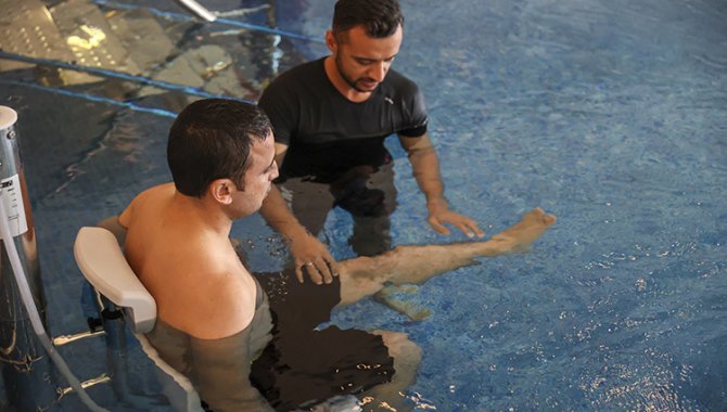 Fizyoterapist Furkan Sezen de hastaları başarılı şekilde tedavi ettiklerini dile getirerek, "Normal şartlarda yer çekiminin yüzde 90'ını su kendisi alıyor, hastaların eklemlerine yüzde 10'luk bir yük biniyor. Bu da egzersizlerini rahatça yapmalarını sağlıyor." diye konuştu.