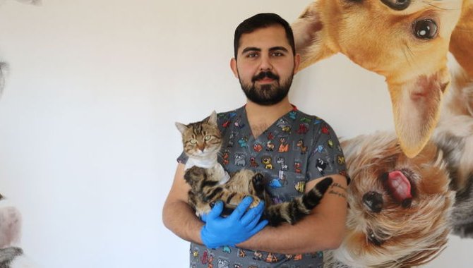 Çelik'in, 23 Nisan Mahallesi'ndeki kliniğine bir vatandaş tarafından yaralı halde kedi getirildi.