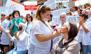 Ankara'da güzellik uzmanları, Danıştay'ın 'yoğun atımlı ışık' (IPL) tedavi yönteminin yürütmesini durduran kararını protesto etti.