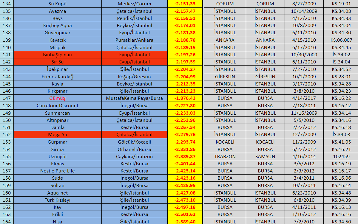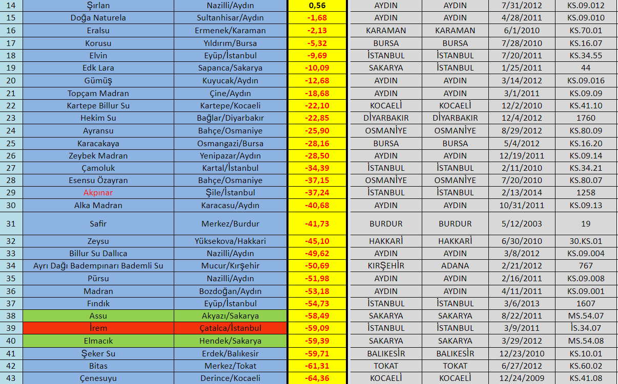 Gıda Hareketi'nden yapılan basın açıklamasında "Doğal Mineralli Kaynak Suyu"nda 82,73 puanla Buzdağı, "Doğal Kaynak Suyu"nda 62,80 puanla Fuska, "İçme Suyu"nda ise 4,22 puanla Erpınar markası birinci sırada yer aldığı belirtilirken, üreticilere de şu çağrı yapıldı: