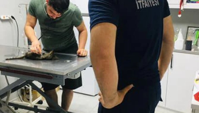 İtfaiye ekibince kliniğe götürülen kedi yavrusunun sağlık durumunun iyi olduğu öğrenildi.