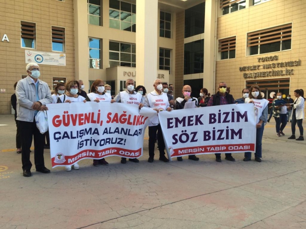 Özellikle pandeminin ilk aylarında sağlık çalışanları maske, siperlik, gözlük, eldiven, dezenfektan gibi koruyucu materyallere ulaşmakta ciddi sorunlar yaşadı. Salgının ilerleyen dönemlerinde ise aile sağlığı merkezlerinde, iş sağlığı ve güvenliği gibi birinci basamakta görev yapan sağlık çalışanları ve işyeri hekimleri yeterli ve nitelikli kişisel koruyucu donanıma (KKD) ulaşım sıkıntısı yaşadı. Türkiye’nin komşu ülkelerinde vakalar ve ölümler hızla artarken Sağlık Bakanlığı sağlık kurumlarında salgın hazırlığı yapma gereği duymadı. Vakalar uzunca bir süre gizlendi ve sağlık çalışanları bulaş riskiyle karşı karşıya bırakıldı. Türkiye’de sağlık ortamları sadece sağlık çalışanları için değil, COVID-19 dışı hastalığı olanlar için de riskli alanlar haline getirildi.