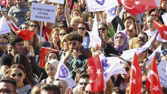 "Bu ülkenin hemşireleri olarak, hastanelerden, aile sağlığı merkezlerinden, toplum sağlığı merkezlerinden, üniversitelerden, sesleniyoruz. Bu seslenişi toplumun sağlığını korumak için yapıyoruz. Meslek kimliğimizi, emeğimizi korumak için yaşam hakkımızı korumak için hastamızın yaşam hakkını korumak için halkımıza hak ettiği hemşirelik bakımını sunabilmek için insanca yaşamak için yaşatmak için halkımızın sağlığı, mesleğimizin geleceği için sesleniyoruz. 'Önce toplum, önce sağlık, önce hasta' diyoruz."
