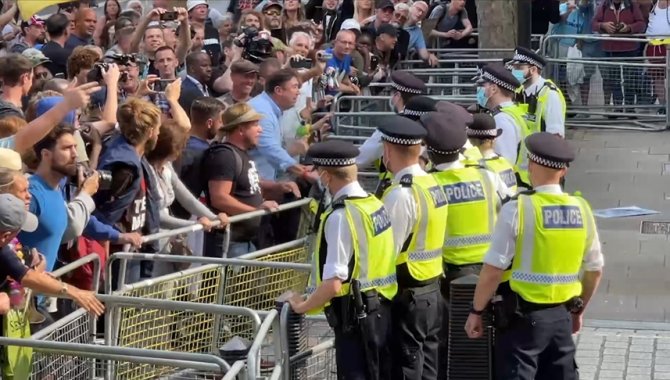 "StandUpX" adlı grubun üyeleri Trafalgar Meydanı'nda bir araya geldi. "Aşıya hayır, karantinaya hayır", "Çocuklarımızın üzerinden elinizi çekin" ve "Hükümet yalan söylüyor" yazılı pankartlar taşıyan göstericiler, hükümetin bazı işletmelere girişlerde Kovid-19 aşısının zorunlu olmasına ilişkin çalışmalarını protesto etti.