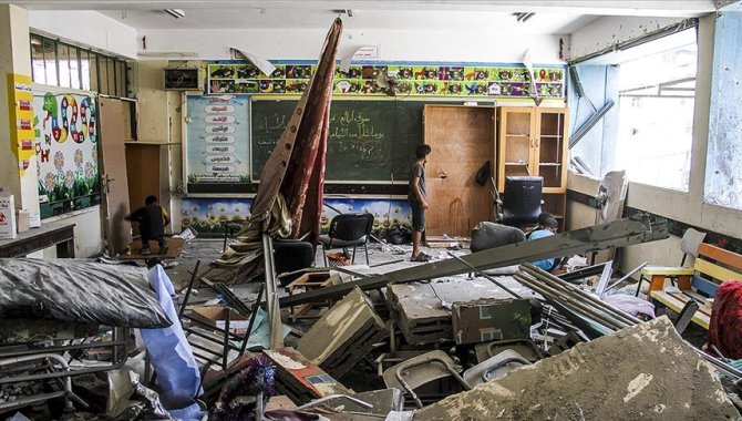 Aylardır devam eden yıkıcı saldırılarda, Gazze Şeridi'nde devlet okulu, üniversite ve üniversite binasının bulunduğu 353 yapı ile Birleşmiş Milletler Yakın Doğu'daki Filistinli Mültecilere Yardım ve Bayındırlık Ajansı'na (UNRWA) bağlı 65 yapı bombalandı, tahrip edildi.