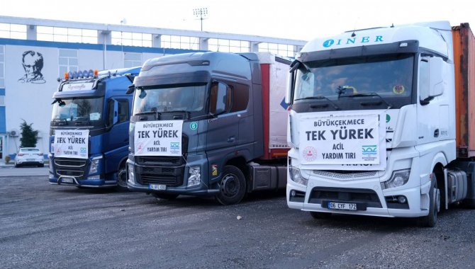 Büyükçekmece Belediyesince ilçenin 6 farklı noktasında oluşturulan Deprem Yardım Kabul Merkezleri'nde toplanan ve içerisinde acil ihtiyaç malzemesi bulunan 7 tır Hatay'a doğru yola çıktı.