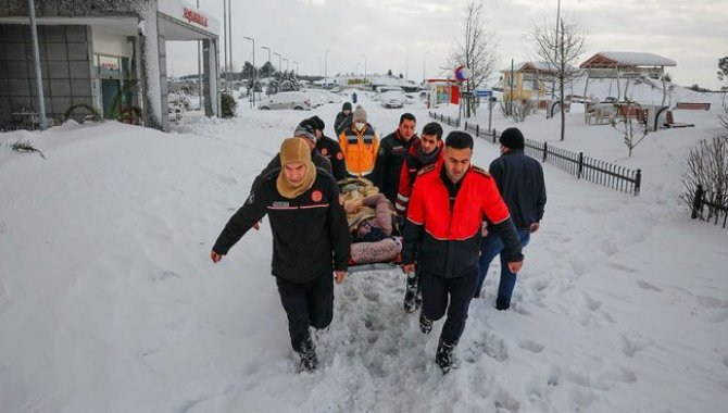 Sağlık ekiplerince evinden alınan Kızğı, hastaneye götürülürken yoğun kar yağışı nedeniyle kapanan yolda ambulans ilerleyemedi.