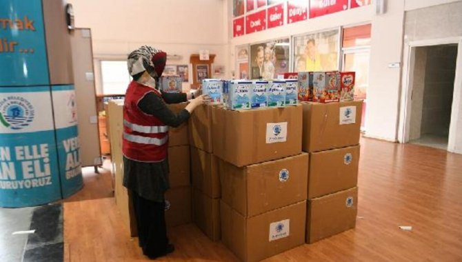 Uzun süre dayanıklı gıda ürünlerinden uyku tulumuna, battaniyeden hijyenik malzemelere kadar depremzedelerin acil ihtiyaç duydukları ürünler kolilere yerleştirilip tırlara yüklendi. Tıra yüklenen koliler belediye görevlileri ve emniyet görevlilerinin destek olmasıyla akşam saatlerinde afet bölgesine ulaşmak üzere yola çıktı.