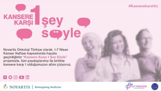 Türkiye’de onkoloji ve hematoloji alanındaki 20 ürünü ve 100’e yakın çalışanıyla hastaların yaşamlarını iyileştirmek için çalışan Novartis Onkoloji Türkiye, 1-7 Nisan Kanser Haftası kapsamında MetAmazon (Metastatik Meme Kanseri Derneği) ve Marmara Onkoloji Derneği ile iş birliğine imza atarak "Kansere Karşı 1 Şey Söyle" projesini hayata geçirdi.