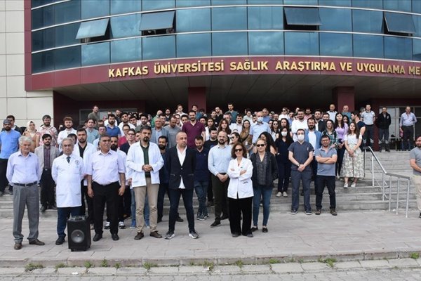 Olay sebebiyle Harakani Devlet Hastanesi ve KAÜ Sağlık Araştırma ve Uygulama Merkezi Hastanesi çalışanı bir grup doktor, M.E'nin geçici görevle çalıştığı hastane önünde toplanıp olaya tepki gösterdi.