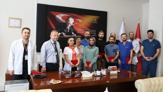 Hastanenin farklı polikliniklerinde görev yapan 10 doktor için hastanenin başhekimliğinde tören yapıldı.