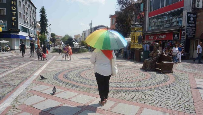 Sıcak havadan şapka, gözlük ve şemsiye ile korunmaya çalışan vatandaşlar ise mecbur olmadıkça 11.00 ile 16.00 saatleri arasında dışarı çıkılmaması gerektiğine değindi.