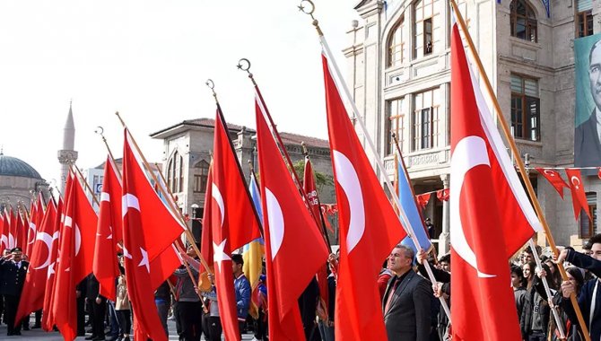 İl Sağlık Müdürü Çiğdem Cerit'in de aralarında olduğu 100 sağlık personeli, müdürlük binasından ellerinde Türk bayraklarıyla çıkarak "100. Yıl" koreografisi oluşturdu.