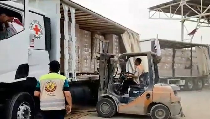 Açıklamada, Refah Sınır Kapısı'ndan bugün giriş yapan insani ve tıbbi yardım taşıyan 10 tırdan 6'sının Gazze'deki Uluslararası Kızılhaç Komitesine teslim edildiği kaydedildi.