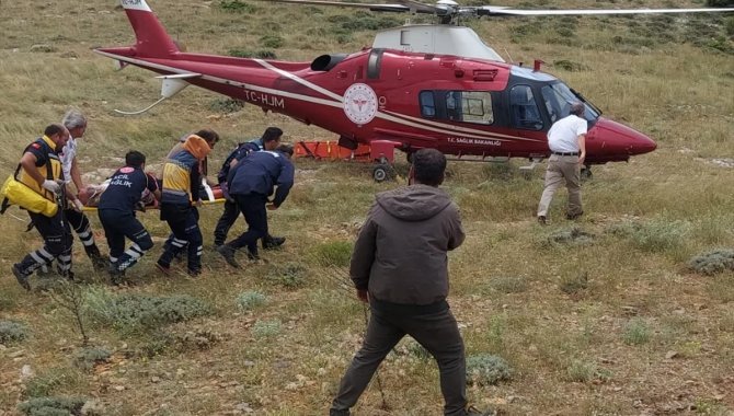 Jandarma ekiplerinin desteğiyle yaklaşık bir kilometre uzaklıktaki zirveye taşınan hasta, ambulans helikopterle Konya'ya sevk edildi.