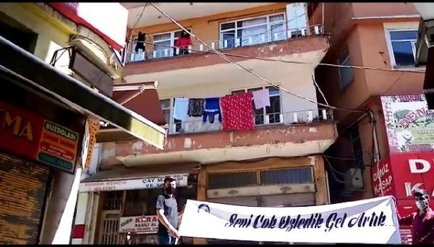 Rize’de özel hastanede hemşire olarak görev yapan Tuğba Kılıç, 'Covid-19' test sonuçları pozitif çıkınca tedaviye alındı. Rize Devlet Hastanesi’nde 15 gün süren koronavirüs tedavisinin ardından sağlığına kavuşan Tuğba hemşire, taburcu oldu ve evde izolasyon süreci başladı. Uzun süredir Kılıç ile görüşemeyen mesai arkadaşları, ‘Seni çok özledik gel artık’ yazılı pankart ile Tuğba hemşirenin evinin bulunduğu mahalleye giderek, sürpriz yaptı. Balkona çıkan ve arkadaşlarını görünce şaşıran Tuğba hemşire ise meslektaşlarına teşekkür etti.