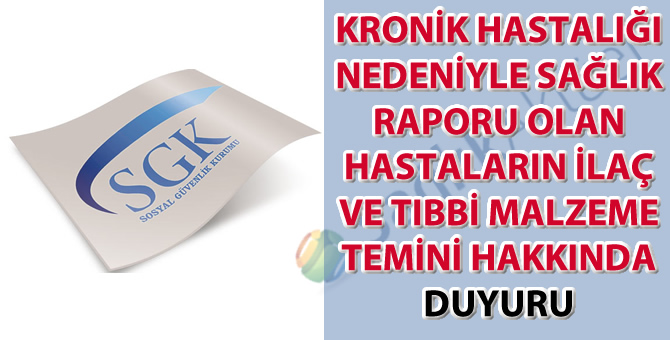 KRONİK HASTALIĞI NEDENİYLE SAĞLIK RAPORU OLAN HASTALARIN İLAÇ VE TIBBİ MALZEME TEMİNİ HAKKINDA
