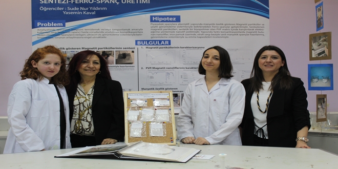 Projeleri hakkında bilgi veren Kültür Koleji Fen Lisesi 10'uncu sınıf öğrencisi Sude Nur Yıldırım, yaptıkları projeyle hasta vücudunda unutulan spançların belirlenebilmesini sağlayacaklarını belirterek, "Öncelikle projemiz için iki ana madde seçtik. Bir tanesi magnetit dediğimiz demir partiküllerinden oluşan bir madde, diğer ise Poli (Vinil Pirolidon) adlı polimer maddesidir. Öncelikle magnetit maddesini kendi laboratuvarımızda sentezledik. Sentezin ardında da Poli (Vinil Pirolidon) maddesiyle birleştirdik. Bu birleşmeden Nanolif elde ettik ve bu maddeyi sargı bezlerinin içine koyduk. İçinde Nanolif bulunan sargı bezlerinin etrafını ameliyat iplikleriyle dikerek, spanç haline getirdik. Bu işlemlerin ardından deneylerimizi yapmaya başladık. Deneylerimizde spançlarımızın hem anti-bakteriyel olduğunu hem de atni-kanser özelliği olduğunu ve böylece kanser hücrelerini öldürdüğünü gözlemledik. Bununla birlikte spançların ameliyatlarda ne kadar çok sıvı emerse o kadar çok avantaj sağlayacağını düşündüğümüz için sıvı emme deneylerini de gerçekleştirdik. Yaptığımız deneyler sonucunda bizim yaptığımız spançların piyasadakilere göre iki kat daha sıvı emme kapasitesi olduğunu belirledik" dedi.