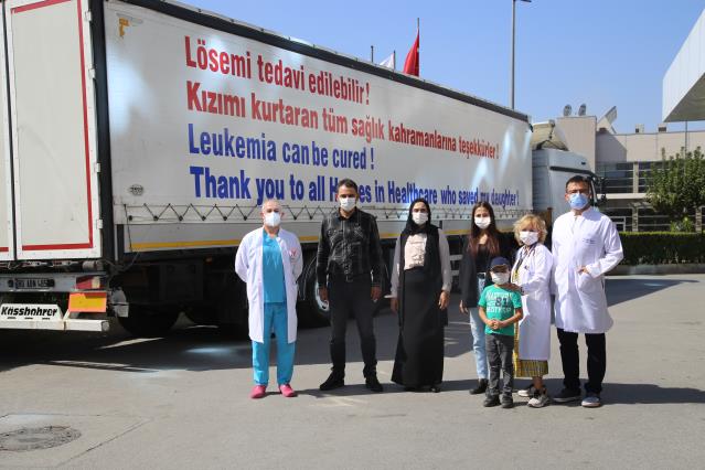 Tır sürücüsü baba Abdurrahman Alkış, tırının dorsesine Türkçe ve İngilizce, "Lösemi tedavi edilebilir. Kızımı kurtaran tüm sağlık kahramanlarına teşekkürler" ve "Siz de kök hücre bağışında bulunun, lösemili çocuklar hayat bulsun" afişleri yazdırdıktan sonra tedaviyi gerçekleştiren doktorlara 6 yıl sonra teşekkür ziyareti yaptı.