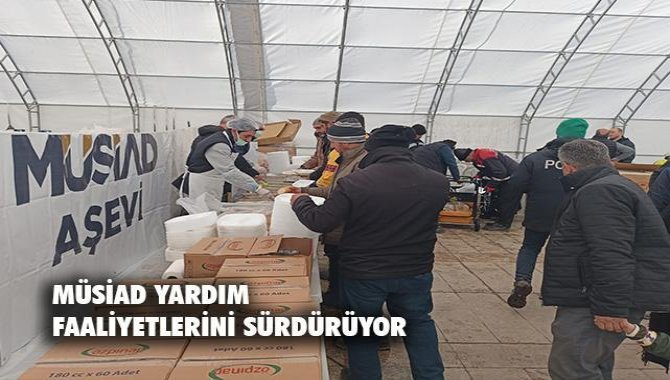 MÜSİAD üyelerinin destekleri ile Kahramanmaraş'ta kurulan çadır kentte depremden etkilenen vatandaşların misafir edildiği, Hatay'daki Serinyol Lojistik Merkezi çalışmalarının devam ettiği, Gaziantep'te yıkımın yoğun yaşandığı Nurdağı ve İslahiye ilçelerine yönelik yardımların sürdüğü ve Adıyaman'da depremden etkilenen vatandaşlara yönelik yardım çalışmalarına devam edildiği bildirildi.
