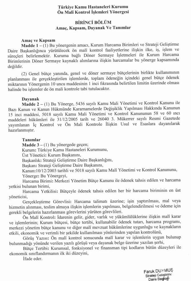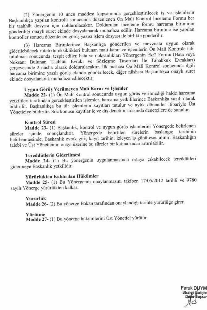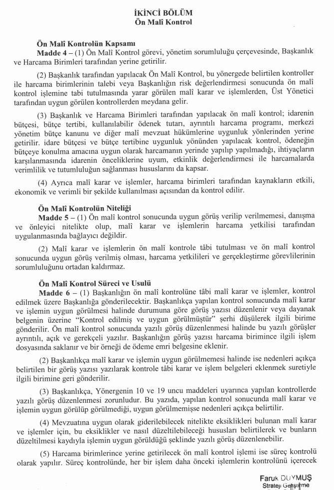 Ön Mali Kontrol İş Akış Şeması için tıklayınız