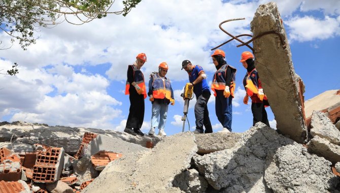 Depreme karşı toplumda farkındalık oluşturmak amacıyla verilen eğitimlere katılan gönüllüler, uzmanların verdiği teorik eğitimlerin ardından sahada gerçekleştirdikleri tatbikatlarda deneyim kazanıyor.
