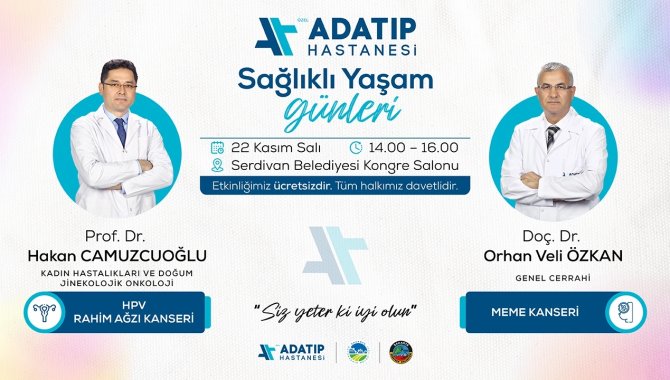 Sosyal sorumluluk projeleri çerçevesinde çalışmalarına devam eden Özel Adatıp Hastanesi, Jinekolojik Onkoloji Cerrahisi Uzmanı Prof. Dr. Hakan Camuzcuoğlu ile Genel Cerrahi Uzmanı Doç. Dr. Orhan Veli Özkan'ı Sakaryalılarla buluşturuyor.