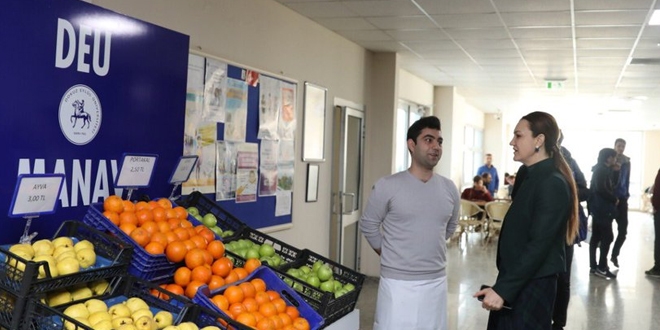 "İzmir'de örnek bir projeyi daha hayata geçiren üniversitemiz, mensuplarımızın uygun fiyatlarla meyve sebze satın alabileceği 'DEÜ Manav' standının ilkini Tıp Fakültemizdeki kantininde hizmete açtı. Hayırlı olsun".