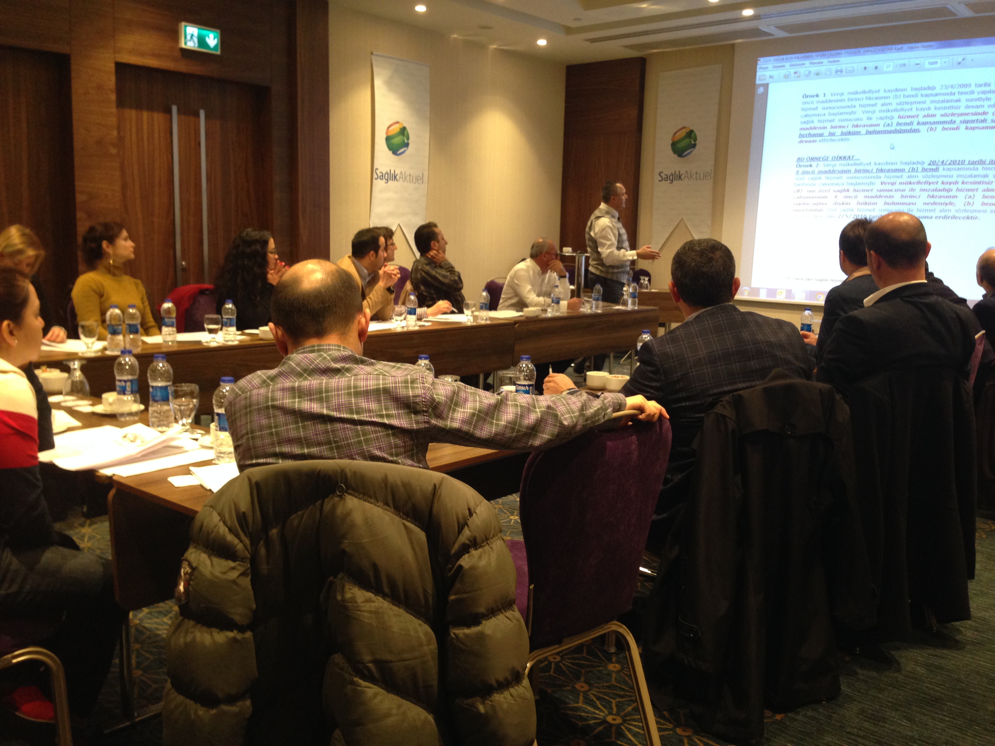 Hekimlik Hizmeti sunumunun Ülkemizdeki yasal düzenlemeler çerçevesinde Çalışma Bakanlığı, Maliye Bakanlığı, Sağlık Bakanlığı ve diğer mevzuatlar açısından geldiği son durum hakkında karşılıklı fikir alışverişinde bulunmak ve konu ile ilgili riskleri ve çözüm yollarını konuştuğumuz Özel sağlık kurumlarında hekim çalışma usulleri analizi-Workshop'un üçüncüsü 26 Aralık 2015 tarihinde İstanbul'da Mercure Hotel Topkapı'da gerçekleştirildi, dördüncü workshop 23 Ocak 2016 tarihinde yine İstanbul'da yapılacak.