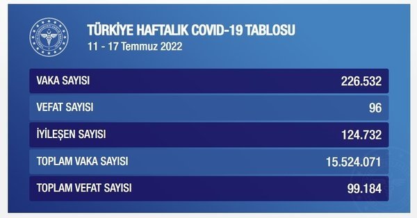 Ülke genelinde 11-17 Temmuz'da 226 bin 532 kişinin testi pozitif çıktı, 96 kişi yaşamını yitirdi.