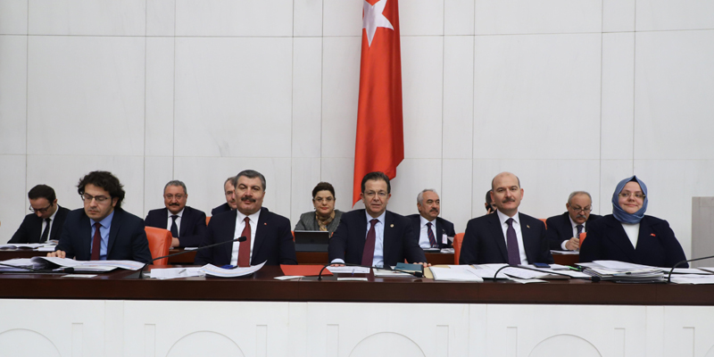 2019 yılı Merkezi Yönetim Bütçe Kanunu Teklifi ile 2017 Yılı Merkezi Yönetim Kesin Hesap Kanunu Tasarısı’nın altıncı tur görüşmeleri tamamlandı. TBMM Genel Kurulu’nda milletvekillerine hitap eden Dr. Fahrettin Koca, bakanlığın çalışmalarını ve hedeflerini anlattı. Yaklaşık 13 saat süren görüşmelerin ardından Sağlık Bakanlığı, İçişleri Bakanlığı ve Aile, Çalışma ve Sosyal Hizmetler Bakanlığı’nın bütçeleri Genel Kurul’da oylanarak kabul edildi.