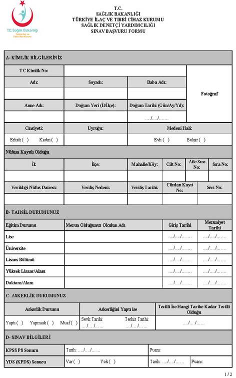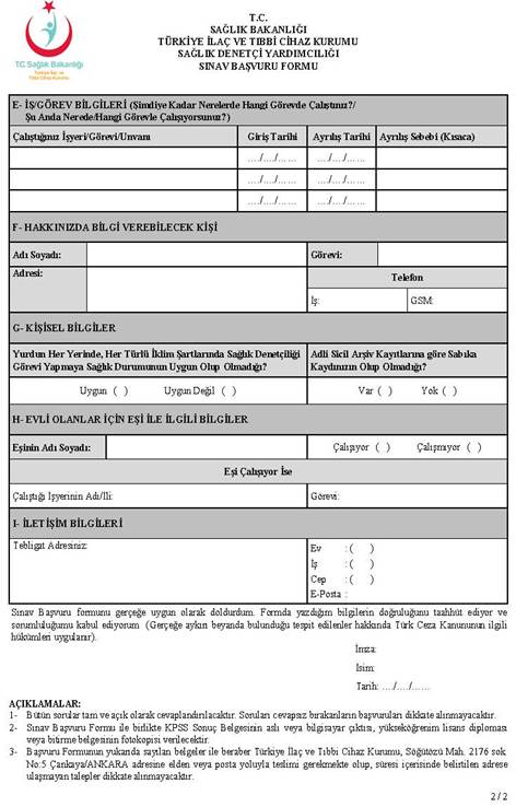 1) Kurumun web sayfası üzerinden online doldurulup gönderilen, ıslak imzalı Sağlık Denetçi Yardımcılığı sınav başvuru formu,