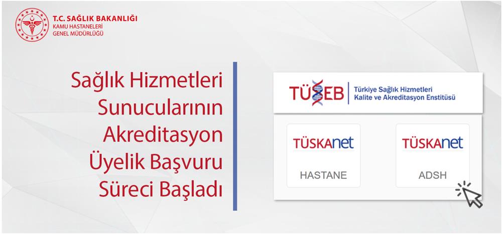 TÜSEB bünyesinde akreditasyon hizmeti sunan Türkiye Sağlık Hizmetleri Kalite ve Akreditasyon Enstitüsü Hastane Akreditasyon Programı yürürlükte olup, kurumsal üye olarak akreditasyona hazırlanmak isteyen kurumlar aşağıdaki linkten kurumsal üyelik işlemlerini başlatabilirler.