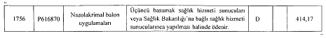 MADDE 13 – Aynı Tebliğin Tanıya Dayalı İşlem Puan Listesi (EK-2/C)’nde “P616870” SUT kodlu işlem satırı aşağıdaki şekilde değiştirilmiştir.