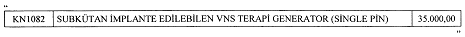 MADDE 14 – Aynı Tebliğin Beyin Cerrahisi Branşı Kranial Cerrahisi Alan Grubuna Ait Tıbbi Malzemeler Listesinde (EK-3/E-2) aşağıdaki düzenlemeler yapılmıştır.