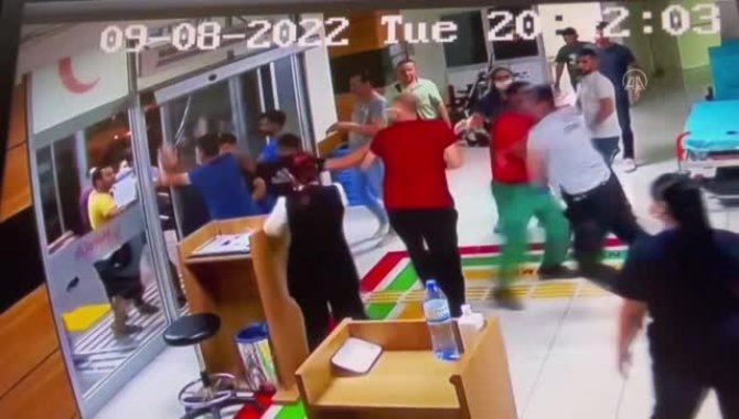 Güvenlik kamerasına yansıyan olayda, hastaneye girmeye çalışan şahısların sağlık çalışanlarını darbettiği ve bu esnada diğer sağlık çalışanlarının kapıyı kapatarak içeri girmelerini engellemeye çalıştıkları görülüyor.