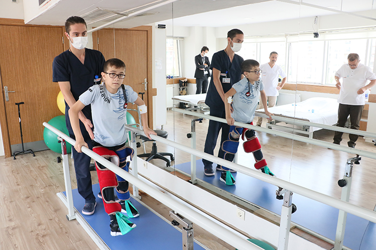 Akdeniz, "Yaptığımız manuel ve robotik rehabilitasyonlarla hem kastaki kısalıkları hem de yumuşak doku kontraktürlerini (kastaki yapısal değişiklik) açtık. Şu anda Muhammed'in omurgası hafif sağa eğik durumda. Destekle ayakta durabiliyor. Muhammed 3 aylık manuel ve robotik rehabilitasyonlarla paralel barda aparatla kalçasını kullanarak yürüyebiliyor. Ancak belin üçüncü kemiğinde kayma olduğu için rehabilitasyonda bir yerden ileri gidemiyoruz." ifadesinde bulundu.