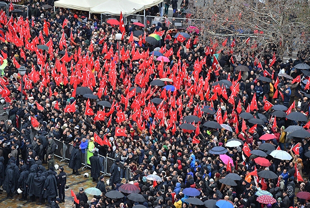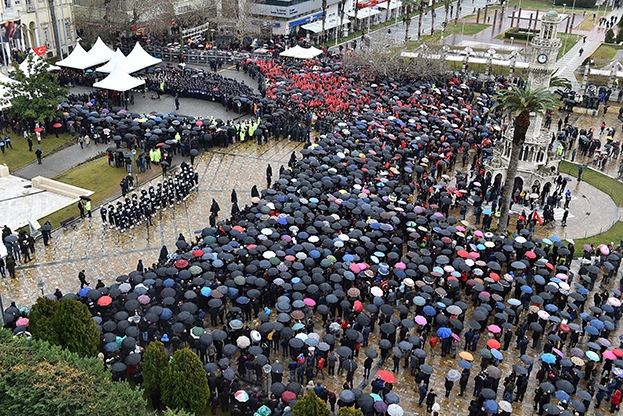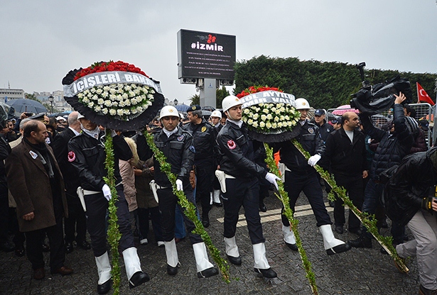 Kötü hava koşullarına rağmen binlerce İzmirli şehit polis için düzenlenen törene katılarak ailesini yalnız bırakmazken, sık sık "Şehitler ölmez, vatan bölünmez" sloganları attı. Gözyaşlarının sel olduğu tören sırasında, gökyüzü de adeta kahraman polise ağlıyordu.