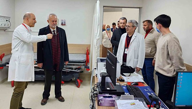 5 ay önce hizmete başlayan Serdivan Devlet Hastanesi günde bin 200 hastaya hizmet veriyor. Dahiliye, çocuk hastalıkları, genel cerrahi, kardiyoloji, göz, fizik tedavi, psikiyatri, üroloji, enfeksiyon hastalıkları olmak üzere toplam 12 polikliniği bünyesinde barındıran hastaneyi Sakarya İl Sağlık Müdürü Prof. Dr. Aziz Öğütlü ziyaret etti. Hastane hakkında bilgilendirmelerde bulunan hastane Başhekimi Uzm. Dr. Semih Songür, "15 Ağustos 2023'te hizmete giren hastanemiz 5 aylık dönemde Dahiliye, Çocuk Hastalıkları, Genel Cerrahi, Kardiyoloji, Göz, Fizik Tedavi, Psikiyatri, Üroloji, Enfeksiyon Hastalıkları olmak üzere 12 poliklinikle hizmet veriyor. Günlük ortalama Acil Servis 650 ve Poliklinik hizmeti 550 olmak üzere toplam bin 200 hastaya hizmet veriyoruz. Önümüzdeki aylarda Nöroloji, Radyoloji, Göğüs Hastalıkları, Kulak Burun Boğaz polikliniklerimizi de açmayı planlıyoruz. Hastanemizde Acil, Dahiliye, Cerrahi, Günübirlik, Yoğun Bakım, Uyku servisi olmak üzere 6 servisimiz mevcut, bu servilerimizde toplam 55 yatakla hizmet veriyoruz. 4 odalı ameliyathanemizde Genel Cerrahi bölümümüzün ameliyatları gerçekleşiyor. Günde 150 hastaya Fizik Tedavi Ünitemizde hizmet veriyoruz, önümüzdeki ay Endoskopi Ünitemizi de hizmete açmak istiyoruz" dedi.