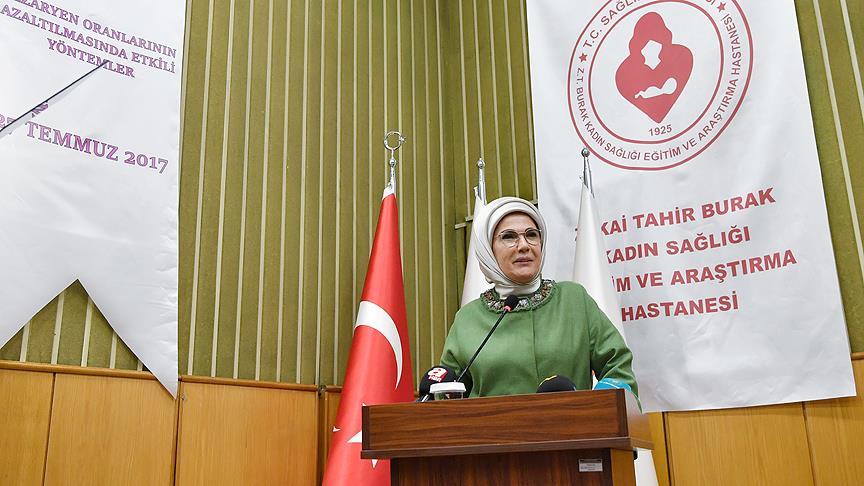 Cumhurbaşkanı Recep Tayyip Erdoğan'ın eşi Emine Erdoğan, Dünya Sağlık Örgütünün yüzde 15 olarak açıkladığı makul sezaryen oranının, Türkiye'de yüzde 53'e yükseldiğini belirterek, "Ülkemizdeki yüzde 53 sezaryen oranını, Fransa'daki yüzde 20, Hollanda'daki yüzde 15'ler seviyesine indirmek için büyük bir seferberlik başlatmalıyız." dedi.