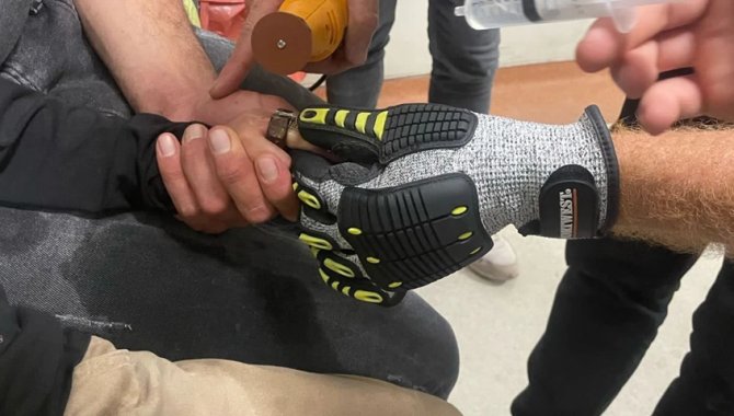 İtfaiye ekipleri hastanede kesici aletle cıvatayı keserek çocuğun parmağını kurtardı.