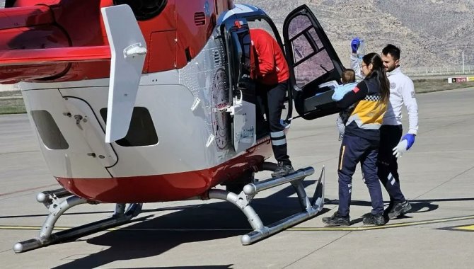 Şırnak'ın İdil ilçesinde yüksek ateş şikayeti bulunan 8 aylık bebek, Sağlık Bakanlığına ait ambulans helikopterle Elazığ'a sevk edildi.
