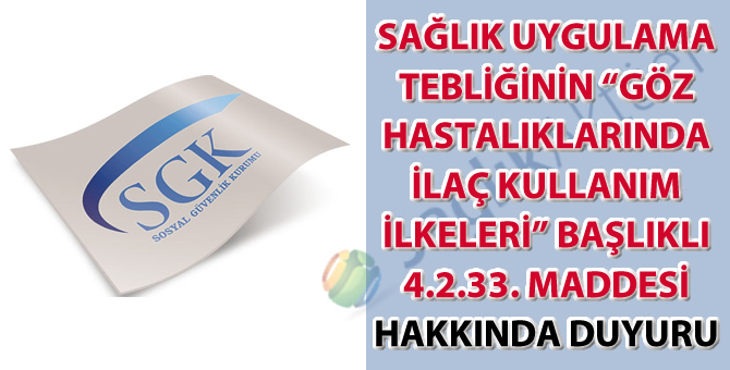 Genel Müdürlüğümüze yapılan başvurular neticesinde Sağlık Uygulama Tebliğinin “Göz hastalıklarında ilaç kullanım ilkeleri” başlıklı 4.2.33. maddesi içeriğinde yer alan ranibizumab ve aflibercept etken maddeli ilaçların 28.02.2015 tarihli Kurumumuz web sayfasında yer alan Duyuru içeriği de dikkate alınarak yaşa bağlı makula dejenerasyonu ve diyabetik makuler ödem tedavilerinde kullanımı ile ilgili tereddütler yaşandığı anlaşılmaktadır. Oluşabilecek hasta mağduriyetlerini önlemek amacıyla söz konusu ilaçlara ait aşağıda yer alan açıklamalar dikkate alınacaktır.